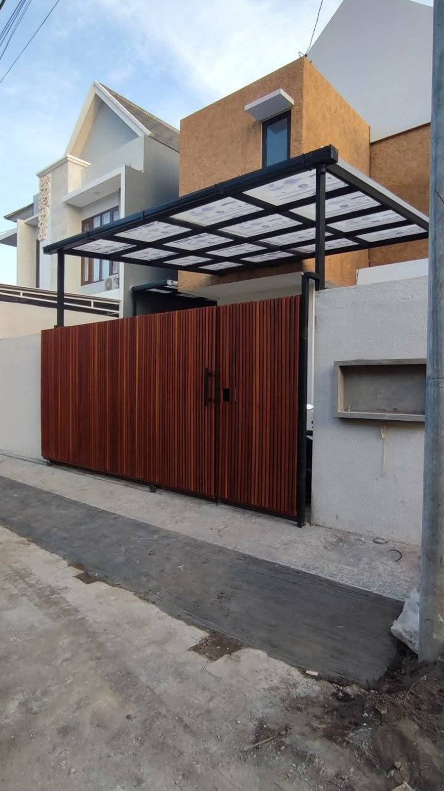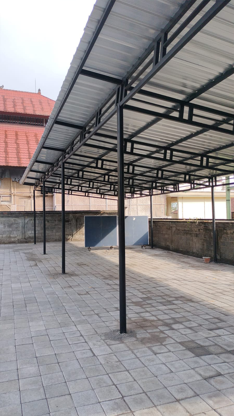 kanopi dan rangka besi dikerjakan dengan perhitungan struktur yang matang, memastikan daya tahan terhadap cuaca serta memberikan perlindungan maksimal dengan tampilan yang rapi dan fungsional.